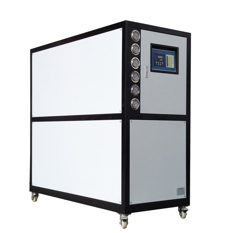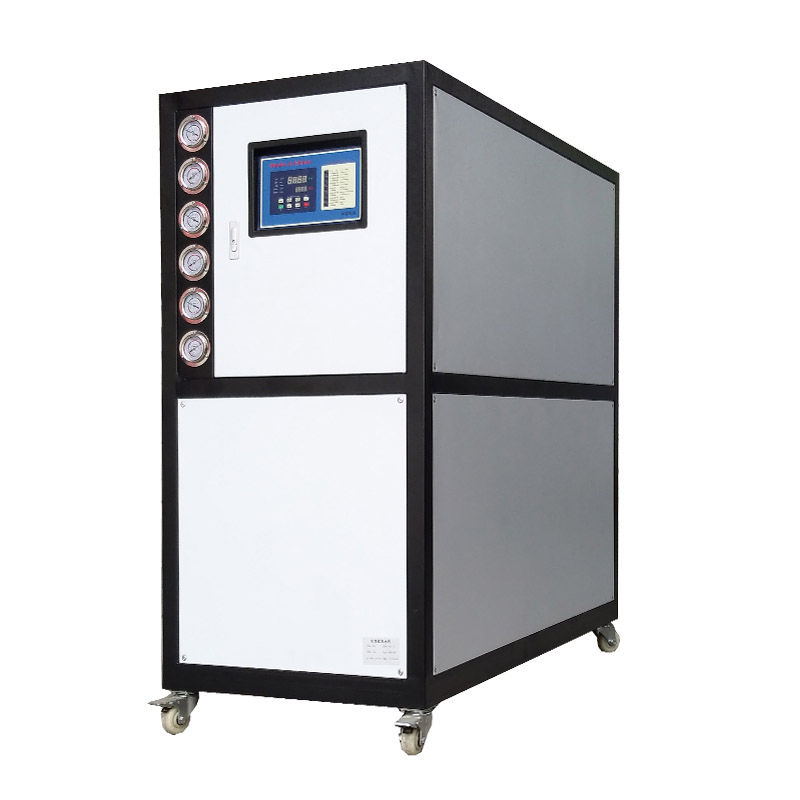 Glacann an chiller comhbhrúiteoir scrollaithe iomlán dúnta ó bhrandaí idirnáisiúnta cosúil le Panasonic, Copeland, agus Daikin. Oibriú cobhsaí, torann íseal agus fuarú tapa. Is féidir an teocht chaighdeánach a rialú ag 5-35 ° C.